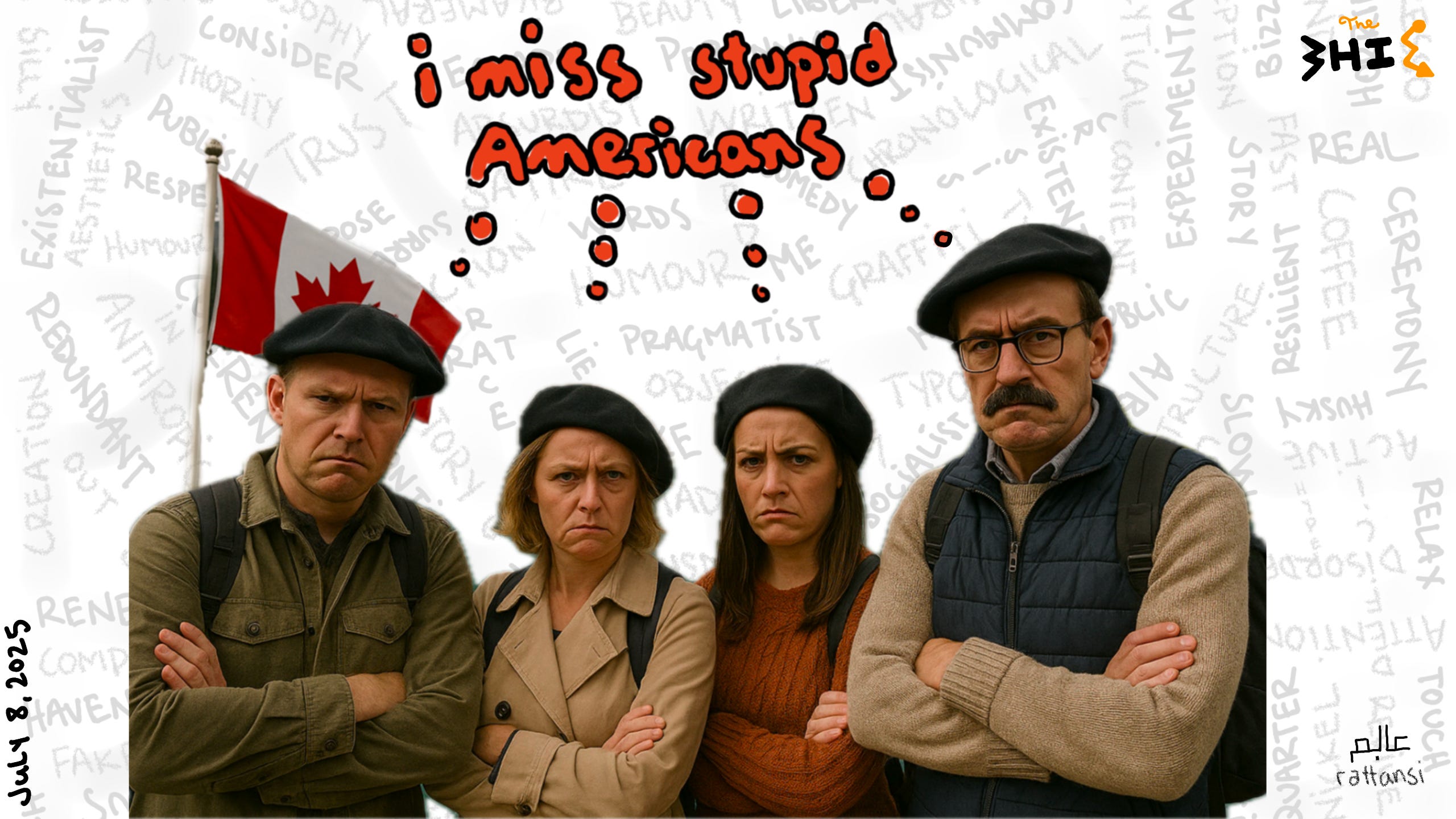 “We are not enjoying this boycott of USA. Not travelling to America has been difficult and substituting it by visiting Canada has made it harder. We don’t feel better than Canadians. When we travel, we like to visit places that help us mourn our fallen empires by criticizing our former colonies. We miss USA and Americans and their lack of social programs that can break the stratified class systems we kickstarted for them.” says French tourist outside 1914 Coffee Company