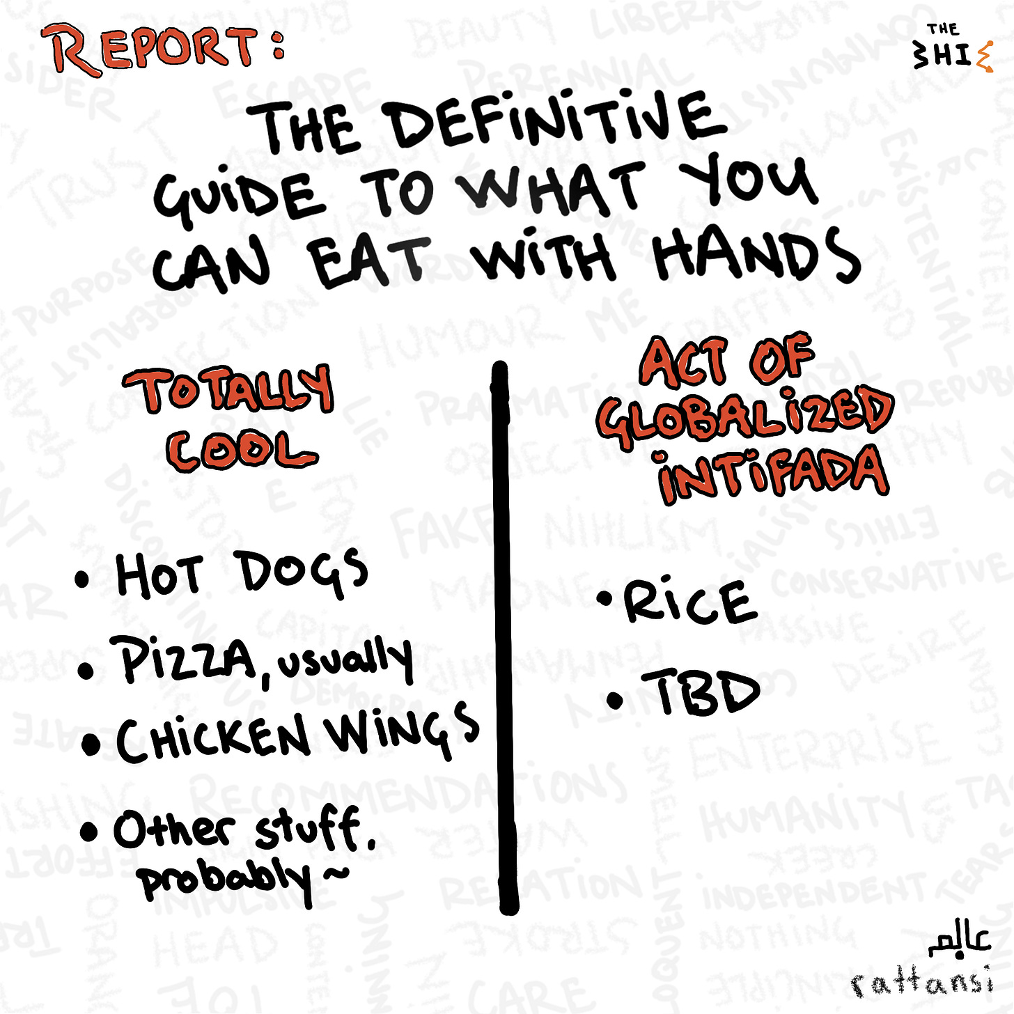 In an act of defence of the greatest civilization, and on this auspicious week that includes Canada Day and Independence Day, we are publishing the definitive guide to what you can eat with your hands. Because hands are what built this civilization. Mostly Black, Chinese, and Indigenous hands. But we know what you can use those hands for.