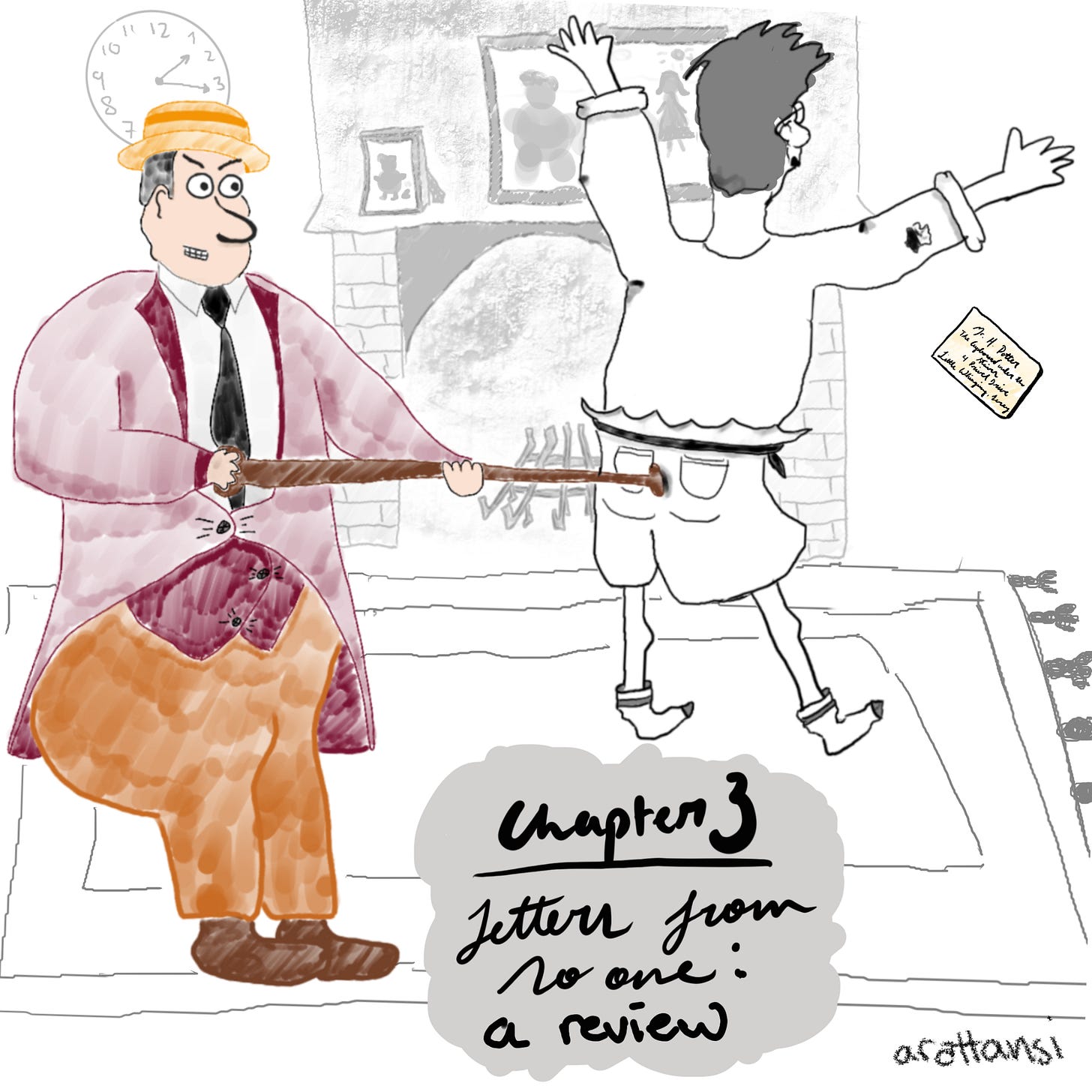 The bulk of the chapter is escalating attempts at a letter being delivered to Harry being matched with equally absurd preventative measures being taken to refuse Harry reading the letter. For example, the Dursleys escape to an abandoned shack on a rock in the middle of a sea to avoid Harry reading the letter. Which seems a little excessive even if the letter is explicit instructions for Harry to kill the entire Dursley family.